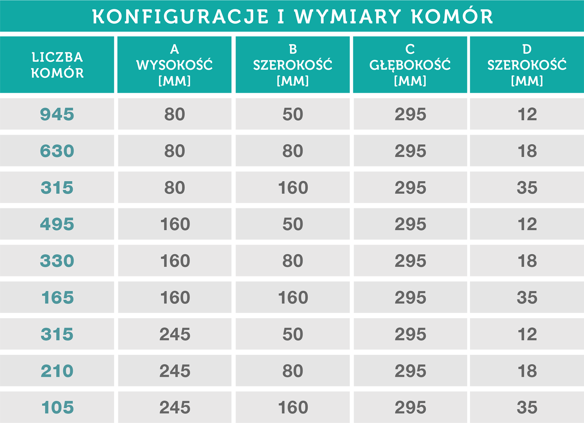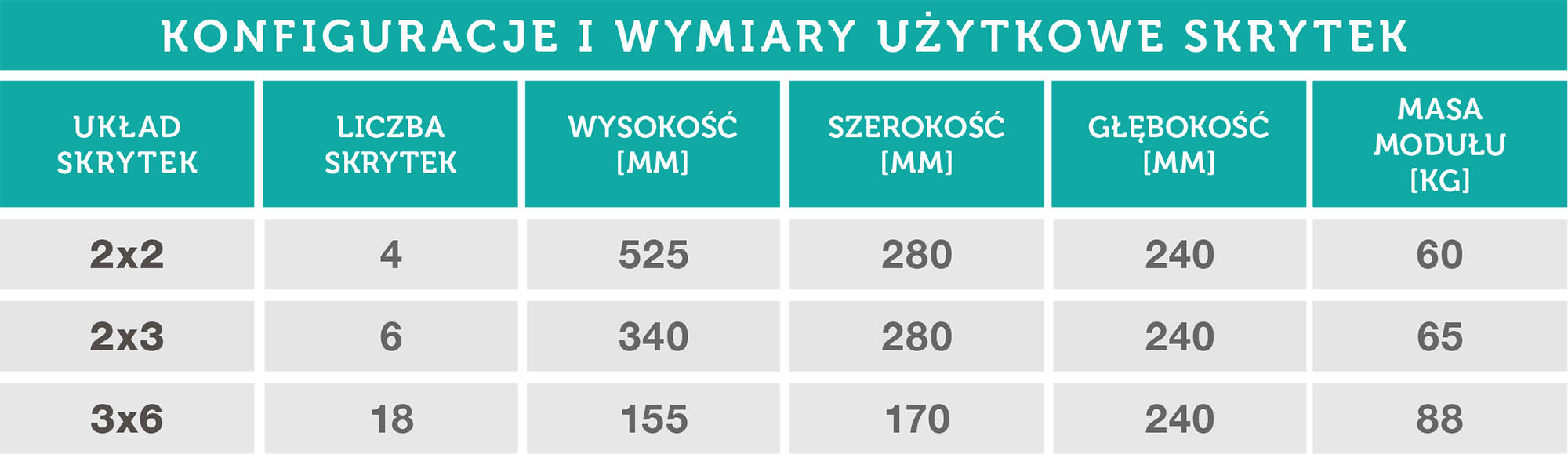 IRSTOCK 945 BOX ermöglicht die Auswahl einer von drei Konfigurationen der BOX-Module (2x3, 2x4, 3x6).