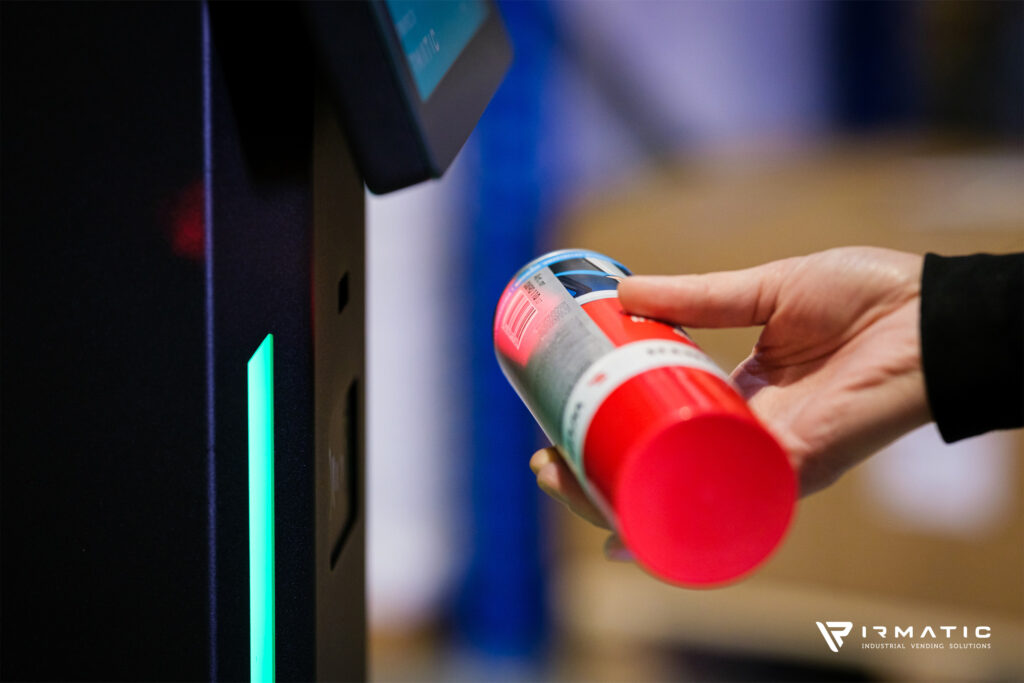 IRPOINT ermöglicht es den Mitarbeitern, Materialien jederzeit selbstständig zu entnehmen und zurückzugeben. Die Bedienung erfolgt ohne Beteiligung eines Lageristen, gemäß den zuvor definierten Berechtigungen.