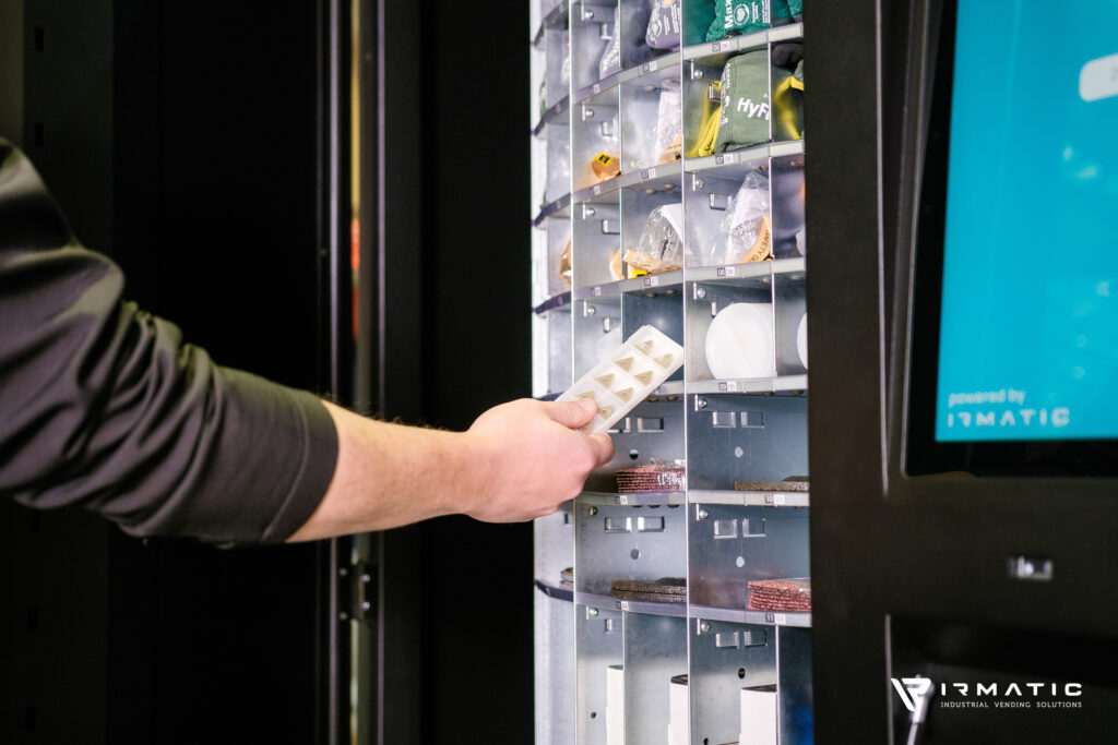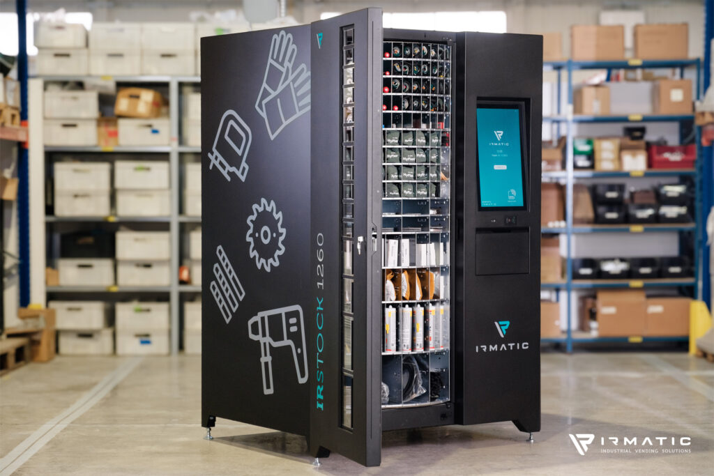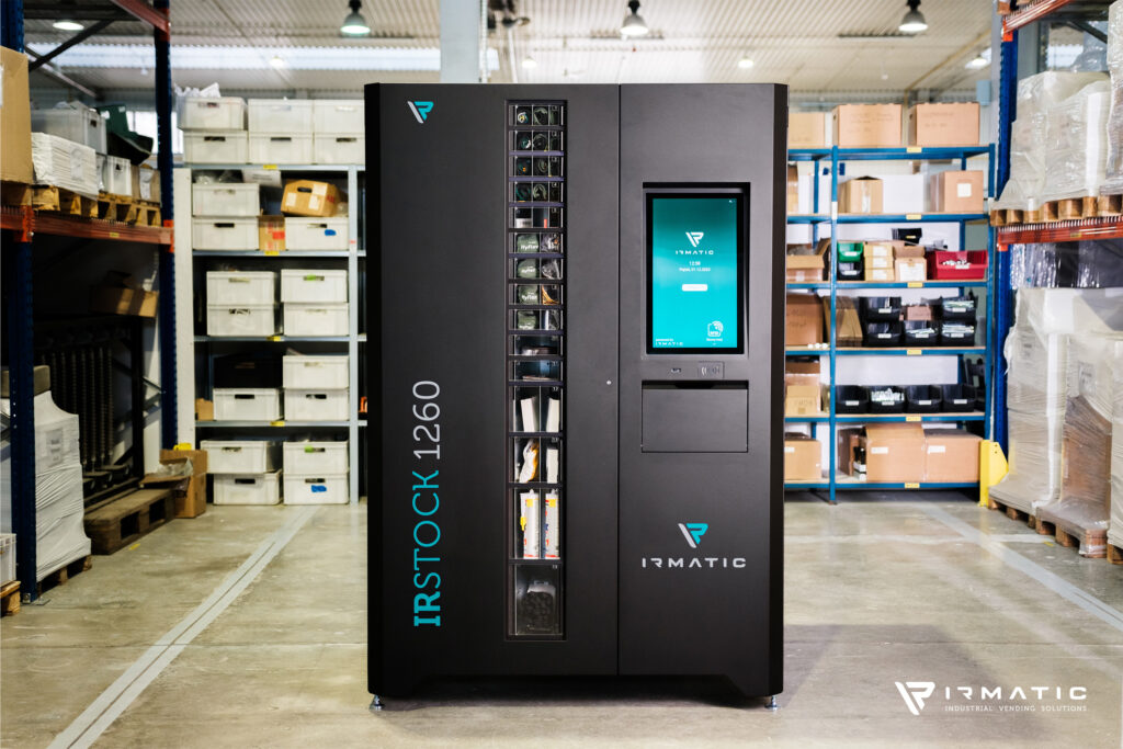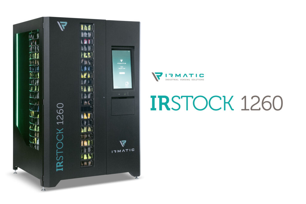 IRSTOCK 1260 is an industrial vending machine designed for advanced distribution of MRO and PPE products. With its drum design and capacity of up to 1260 compartments, the device handles large volumes of consumables 24/7. The machine supports storage automation, reduces product consumption by up to 50%, and eliminates the need for manual dispensing. IRSTOCK 1260 operates based on the IRSystem, offering complete control, record-keeping, and ERP integration.